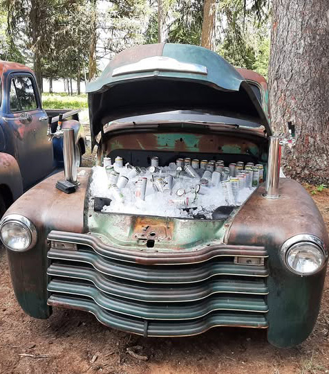 So Isaiah and I came up with the idea of converting an old pickup front end into a traveling kegerator, and Traveling Beer Wagons was born!